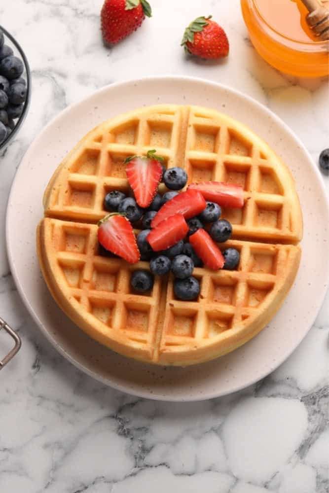 Skip the store-bought box! Make a batch of these delicious homemade waffles from scratch, then freeze them, and you just need to toast them when needed. They come out crispy on the outside, soft on the inside—just like fresh.