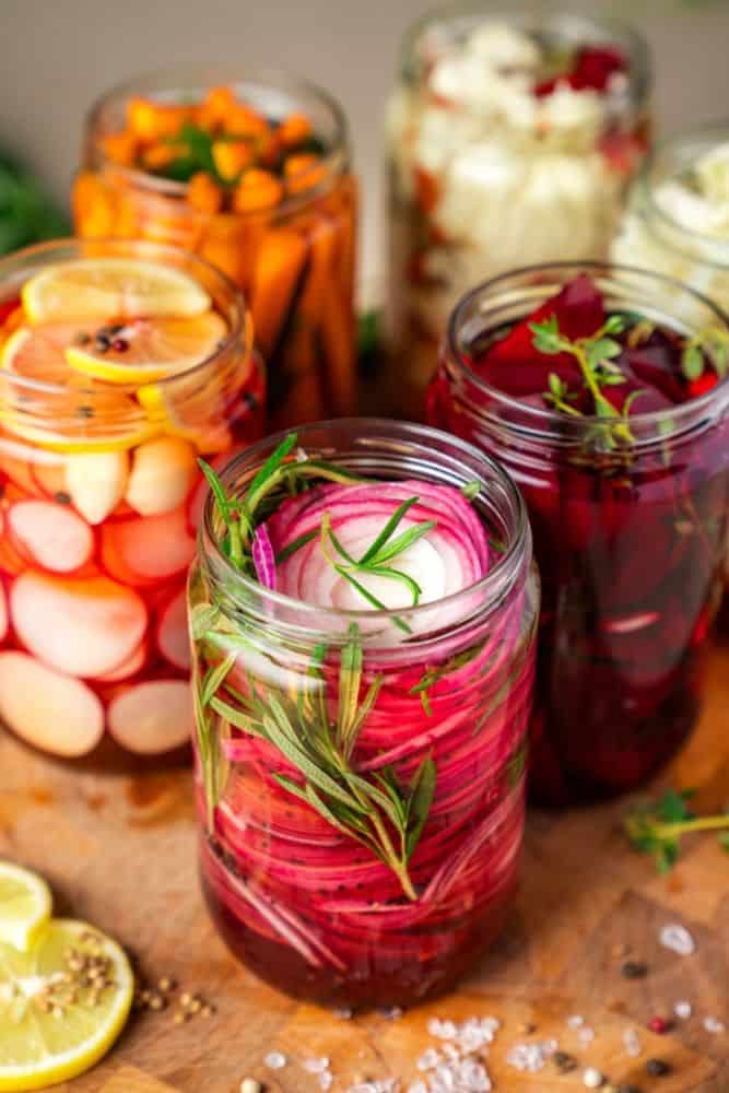 Keep reading as I show you step by step how to quick pickled red onions for tacos, or how to make quick pickled cucumbers for sandwiches, or even how to make some amazing quick pickled garlic to snack on. The best part? There’s no canning and no special equipment needed —just a quick brine, a jar, and your fridge.