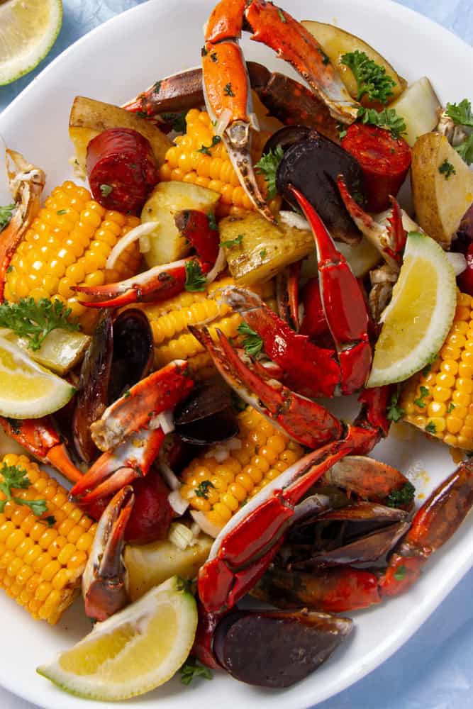 If you want some more ideas for lazy seafood dinners, then my crab boil in a bag is what you’re looking for! If you’re looking for a flavorful seafood dinner that’s bursting with juicy crab legs, corn, and sausage, then this crab boil in a bag is the way to go! It’s made with a rich garlic butter sauce and is perfect if you’re looking for a homemade crab boil that’s both fun and easy. My easy crab boil recipe takes just 20 minutes to prep and is packed with the best seafood boil spices! It’s the perfect way to treat your family to a great dinner that looks like a feast but takes little effort on your part!