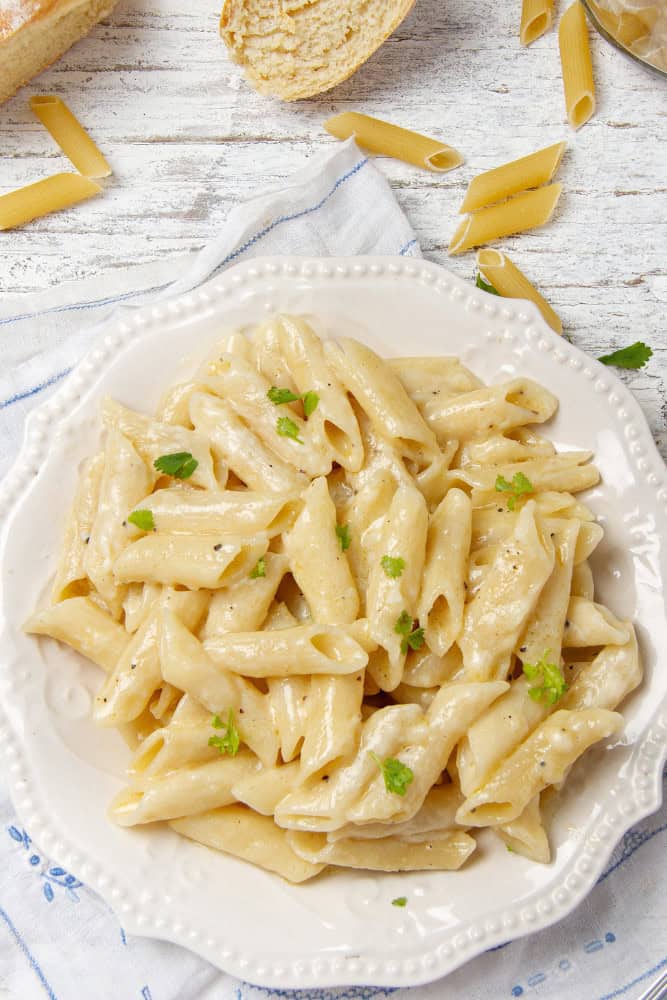 You can’t go wrong with creamy pasta recipes when you’re in searchof lazy dinners. My creamy half and half pasta is so good and takes veyr little time and effort. It’s the perfect lazy dinner that needs just a few minutes and a handful of ingredients! Serve it with some veggies or some protein for a full meal!