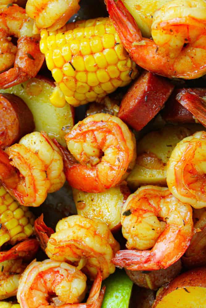 If you’ve ran out of lazy dinner recipe ideas, then you need to try out my easy Sheet Pan Shrimp Boil recipe that’s made in minutes! This easy sheet pan shrimp boil recipe is so flavorful and makes the best seafood boil made in one pan for super easy clean up! If you’ve been craving an oven baked shrimp boil recipe, then you cannot go wrong with this one! This is the perfect shrimp boil sheet pan dinner with just 10 minutes prep!