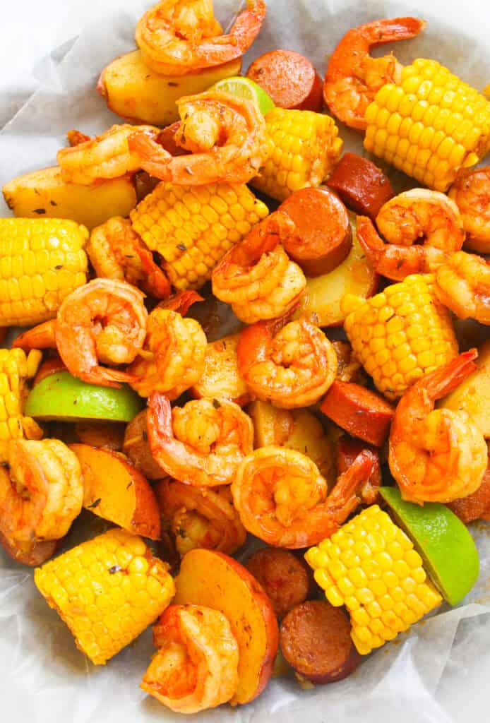 And I can’t stress this enough — but my shrimp boil recipe is incredibly easy to make: It requires minimal prep time and ingredients. And, I like that it’s a one-pot meal that can serve a crowd! I can’t tell you how many times I’ve made this recipe when I needed something quick to put on the table that also would satisfy my family! That’s right! This easy shrimp boil meal is ideal for everything from casual get-togethers or more formal celebrations!