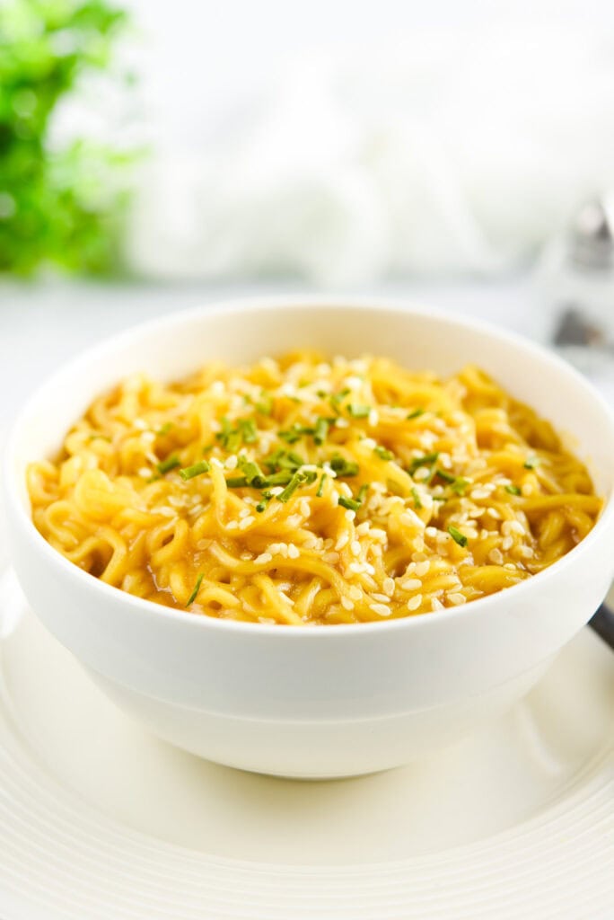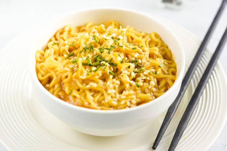 Serve these ramen noodles without the packet warm, topped with sesame seeds, chives, or spring onions. You can also make my juicy stuffed chicken recipe with cream cheese to serve with the ramen!