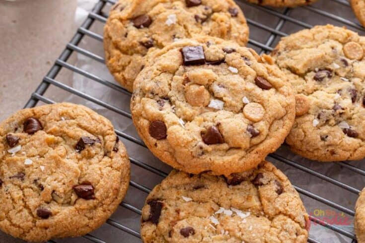 - Pull the cookies out and let them rest on the baking sheet for 5 minutes, then transfer to a wire rack to cool completely. Sprinkle with flaky sea salt if you want and enjoy!